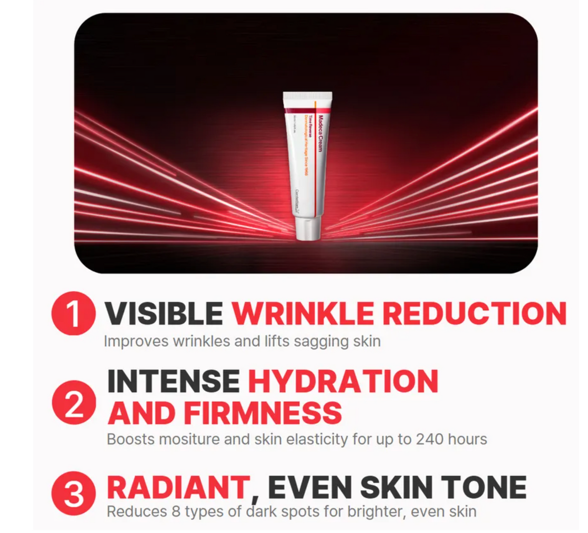 • Patented ingredient - Madeca™ Science contains 12 types of Cica ingredients to maximize soothing effect.