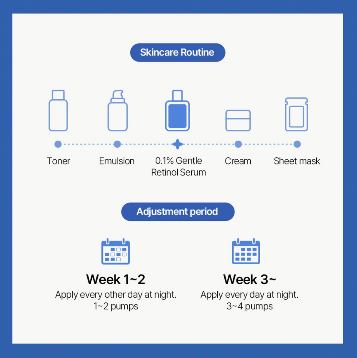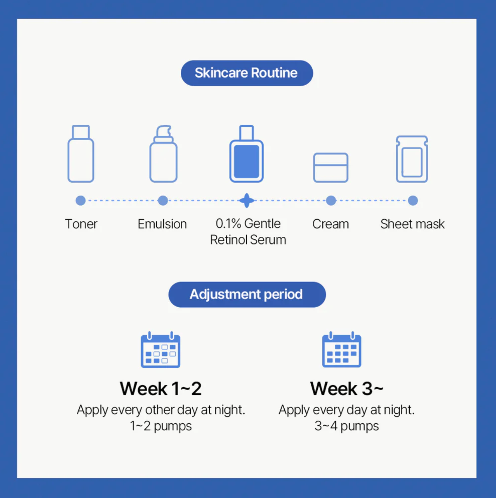 2. Apply retinol at night on a clean, dry face, starting with 1-2 times a week and gradually increasing frequency as your skin adjusts.
